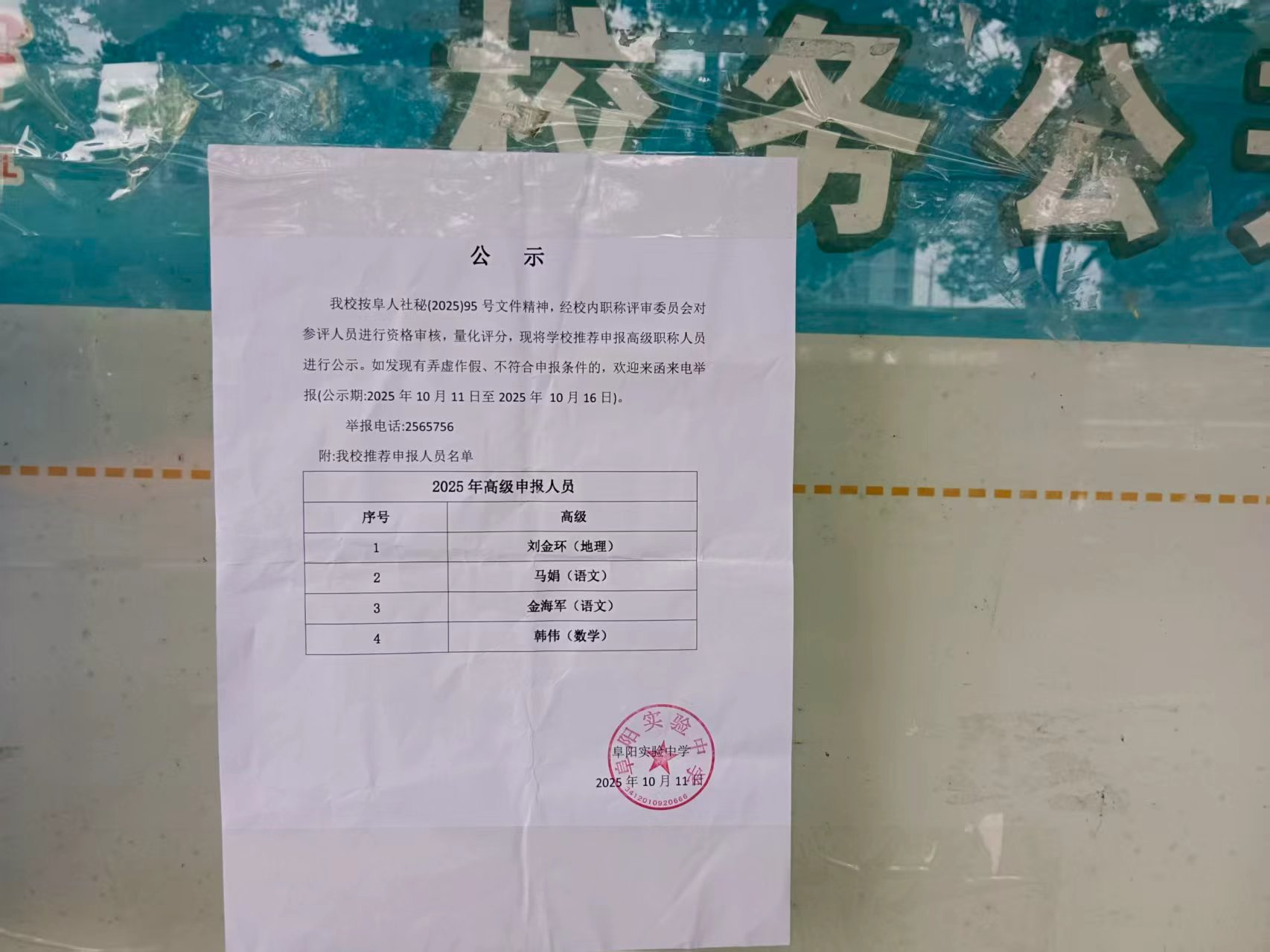 阜阳实验中学韩伟(初中数学)申请高级教师任职资格材料目录