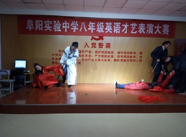 比赛中,有的班级带来动听的英文歌曲表演,有的带来激情的英语演讲展示。此外,多部耳熟能详的剧目也被搬上舞台,不光有《灰姑娘》这样经典的童话故事,更有《三顾茅庐》、《孔雀东南飞》、《狐假虎威》这样中国经典的故事,可谓是精彩纷呈、高潮迭起。选手们默契的团队配合、华丽的舞台服饰、生动的现场音效、形象的舞台道具都体现了对比赛的重视程度与精心准备。