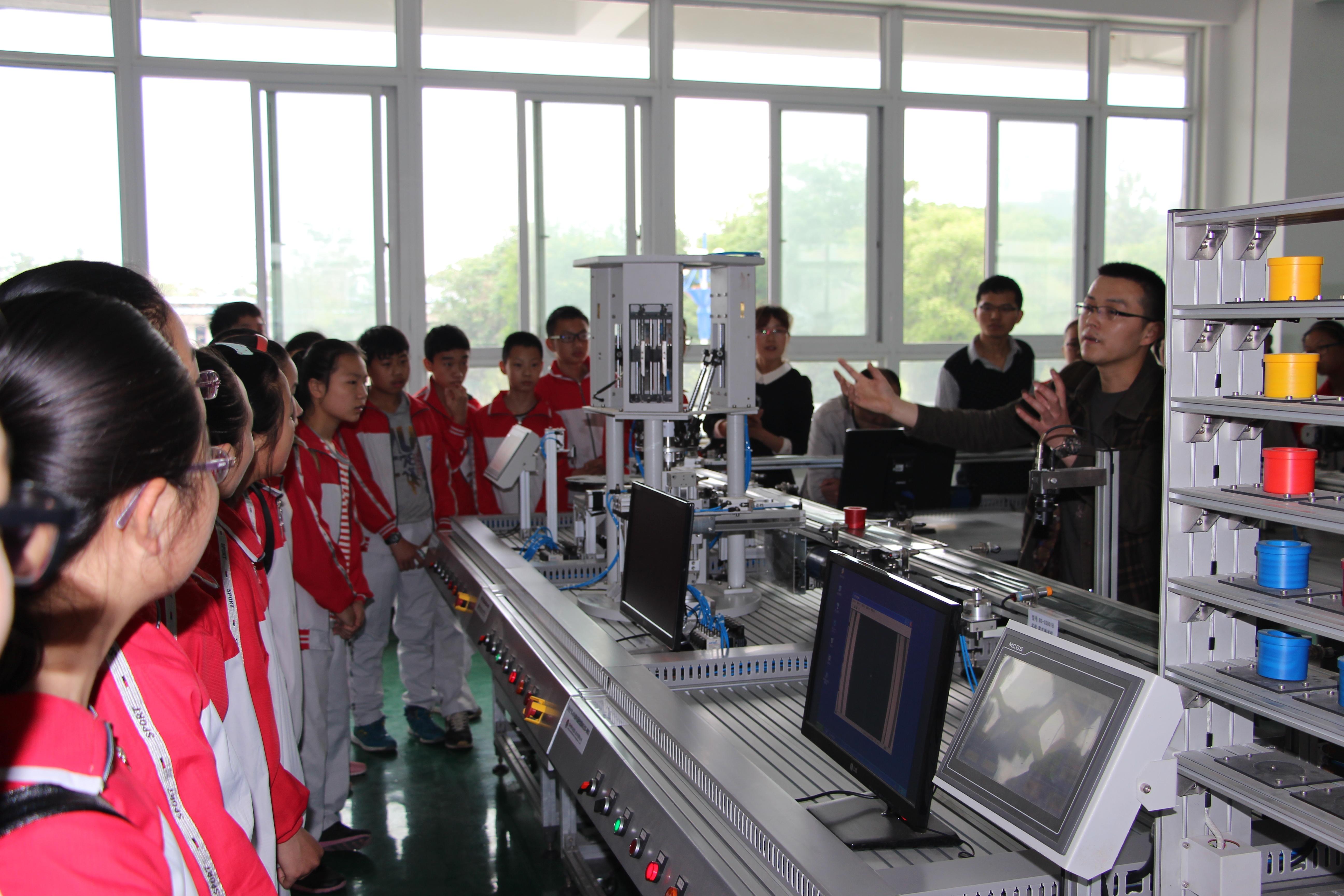 5月17日上午,我校部分班级师生来到阜阳职业技术学院,参加在该院举办的科技开放周活动。在三个多小时的参观中,师生们先后走进综合实训楼、工科实训楼、建筑实训楼、医护实训楼,观看了自动化生产流水线、智能机器人控制、新能源开发与利用、数控机床加工、3D打印、新型建筑材料与设备、生化检验等高科技展示。通过观看演示和听取讲解,师生们对生产生活中的高科技有了新的认识,他们纷纷表示,这样的活动增长了见识,培养了兴趣,希望今后能有更多的机会参观学习。