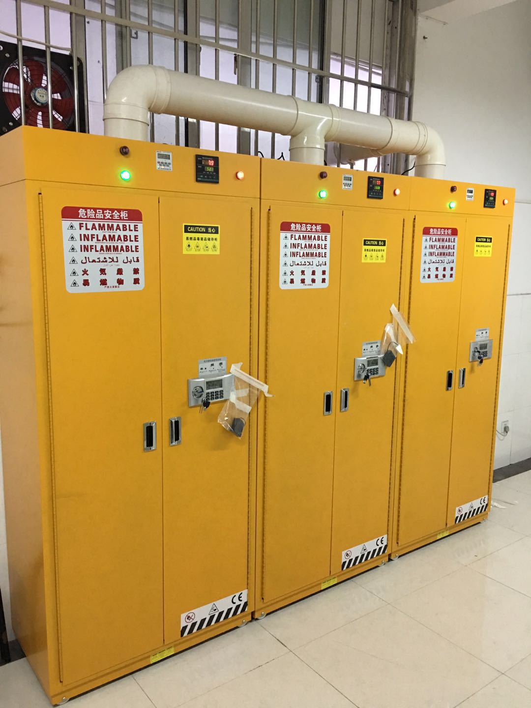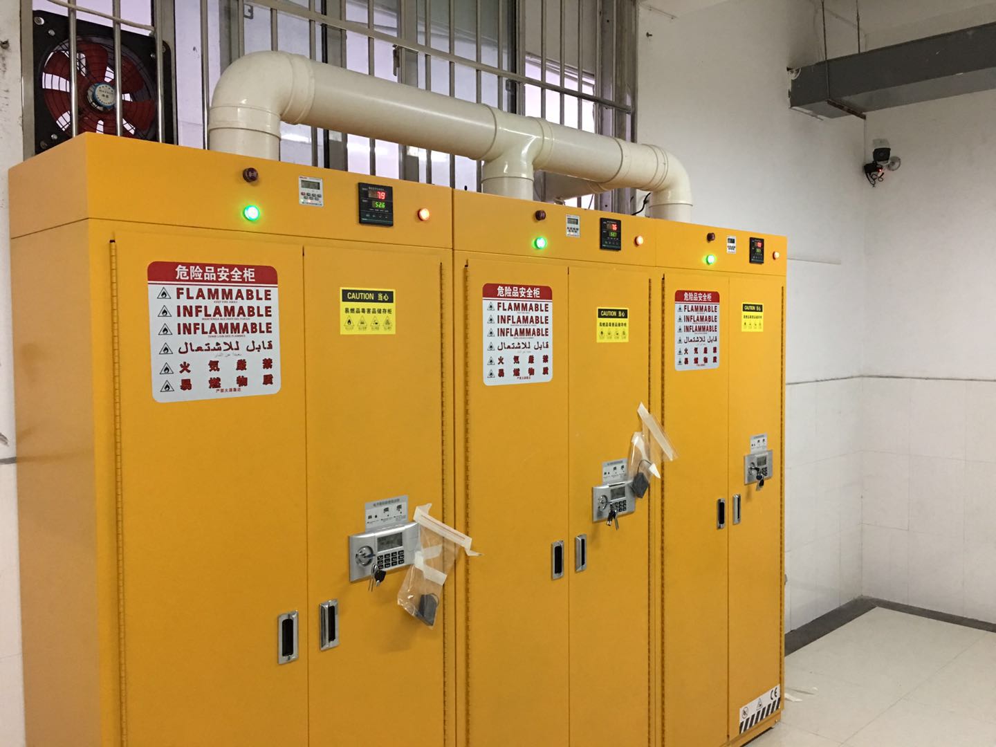 我校经学校安全小组会议研究,决定对我校现用的综合楼三楼危险化学品室进行硬件升级改造。经过相关采购程序,顺利完成三套现代化危险化学品柜的采购工作,新危险品柜将用于存储我校盐酸、硫酸等危险化学品,经过工人的两天紧张施工及相关人员的验收,目前新危险品柜开始正式投入使用。同时为了便于更及时的减少管理安全隐患,新加装了监控系统对危险化学品室进行实时监控。
