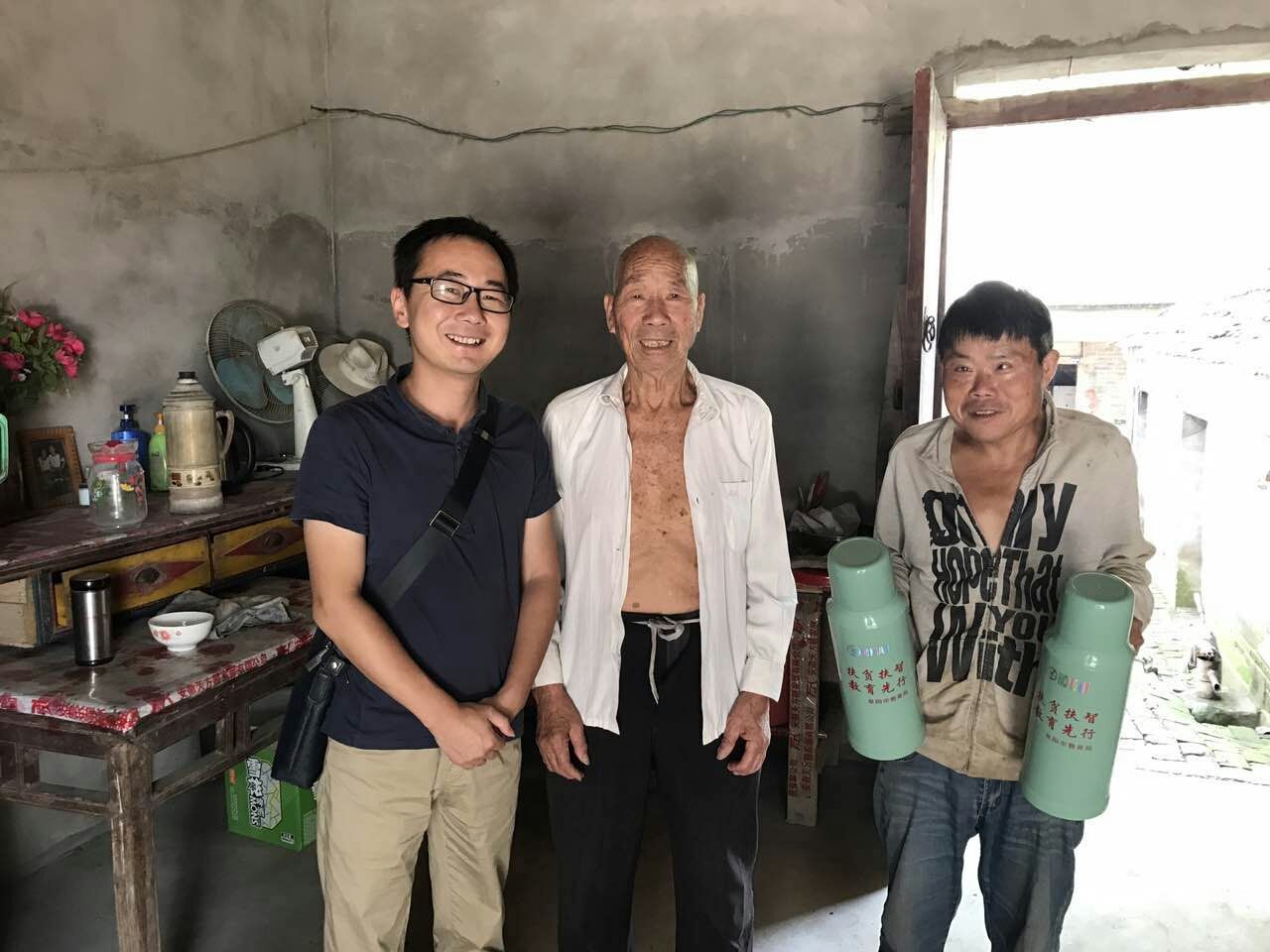 大家抵达周圩村村委会后,市教育局扶贫专干佟永镇同志做了简要的情况介绍和工作安排,随后各位同志带着慰问品——两只暖水瓶分别深入到所帮扶的贫困户家中,与扶贫对象亲切交流,详细询问贫困户家中近况,各项扶贫政策、资金落实情况,贫困户今后一段时间的打算和迫切需要解决的困难和问题等,热情鼓励帮扶对象振作精神,积极努力,争取早日脱贫致富。走访临近结束时,我们把慰问品热水瓶赠送给贫困户家庭,并同他们合影留念。