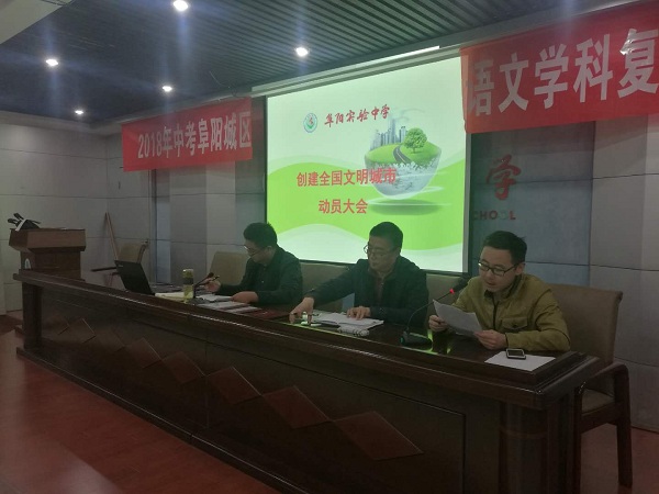 会上,办公室主任闫鸣宣读了阜阳实验中学创建“全国文明城市”工作方案,王永红副校长传达了全市和市教育局创建“全国文明城市”动员大会会议精神,结合学校实际对我校创建工作任务进行了解读。王永庆校长在总结时强调,“创建全国文明城市”是市委市政府作出的重要决策,事关全体阜阳人民的形象和利益,作为实验中学的教师,我们一定要提高认识,自觉行动,扎扎实实做好应有的工作,积极参与到创建工作中,共同为建设大美阜阳而努力。