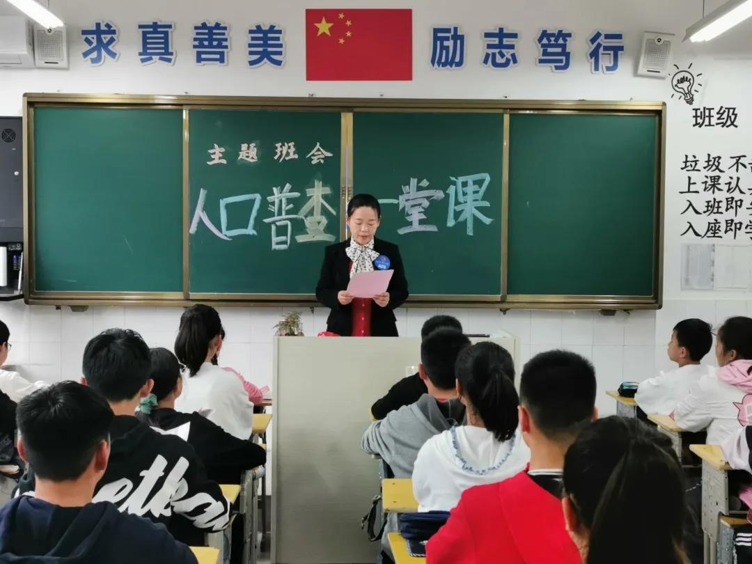 为了让同学们了解一些基本的人口普查知识和人口普查的意义,并做好人口普查宣传工作,阜阳市教育局发展规划科王晴科长和徐鹏飞科长,阜阳市人口普查办董秋实科长和工作人员丁硕同志,在我校七(5)班开展“人口普查一堂课”的主题班会课。
