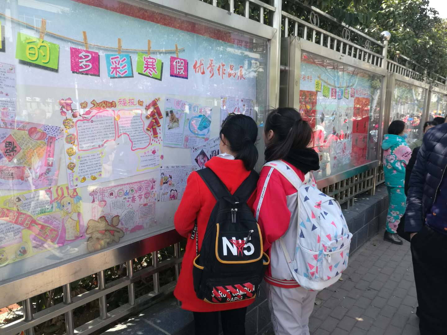 近日,阜阳实验中学校园围栏橱窗前人头攒动,老师、家长和同学们兴致勃勃地欣赏着在这里展出的寒假期特色作业。这些优秀作品有春联、摄影、游记、读书笔记、调查报告、手抄报等,从不同方面反映了同学们丰富多彩的寒假生活。