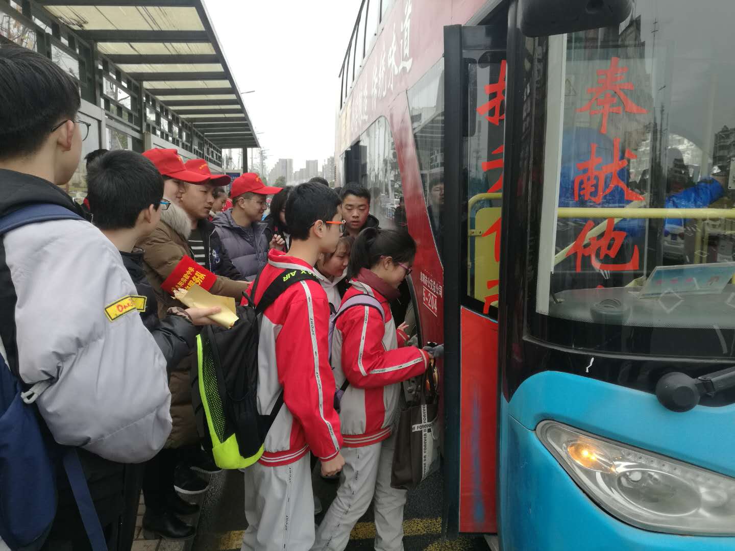 3月19日中午,学校青年志愿者们分别来到校门口、交通路口和公交站台等志愿服务点。此时正是放学时间,同学们如潮水般涌出校门,志愿者们劝说校门外守候的家长向两侧辅路疏散,指挥汽车、电瓶车尽快离开,以免造成交通拥堵。在中南大道与人民西路交叉路口,志愿者们守候在人行横道前,红灯亮起时,立即阻止正要过马路的学生和家长,绿灯亮起时,他们一边让大家快速通过,一边注意观察来往的车辆。乐家生活广场公交站台上,也有我校志愿者活跃的身影。他们在公交车进站前提醒等候的人们做好准备,当车辆缓缓停下,他们组织学生和市民依次排队上车,还不忘告诉学生在车上给老人让座。