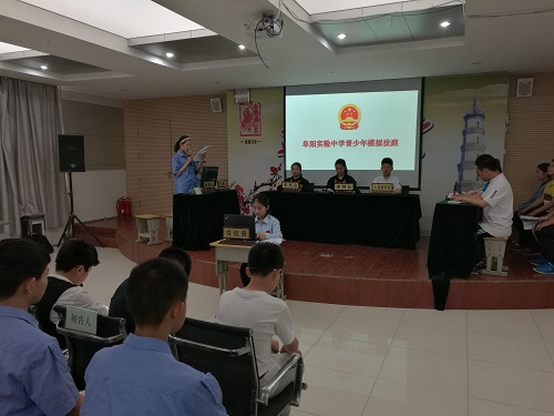 为了提升师生的法律意识,增进同学们对法庭审判工作的了解,在颍东区人民法院指导下,5月24日,实验中学举行了“青少年模拟法庭”活动,通过生动形象的情景剧和庄重严肃的模拟庭审,为在场师生上了一堂生动的法制教育课。
