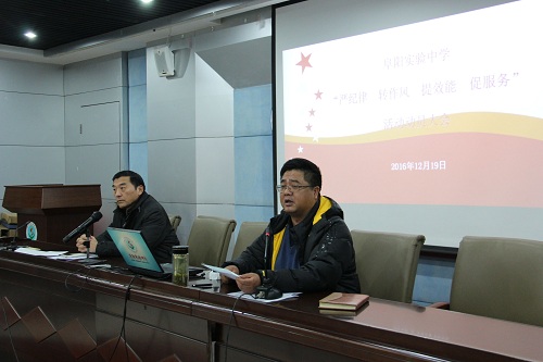 12月19日下午,学校召开“严纪律、转作风、提效能、促服务”活动动员大会,部署开展相关活动。校党总支书记、校长王永庆同志首先传达了市委市政府和市教育局开展有关文件和会议精神,宣读了我校开展“严纪律、转作风、提效能、促服务”活动的实施方案。