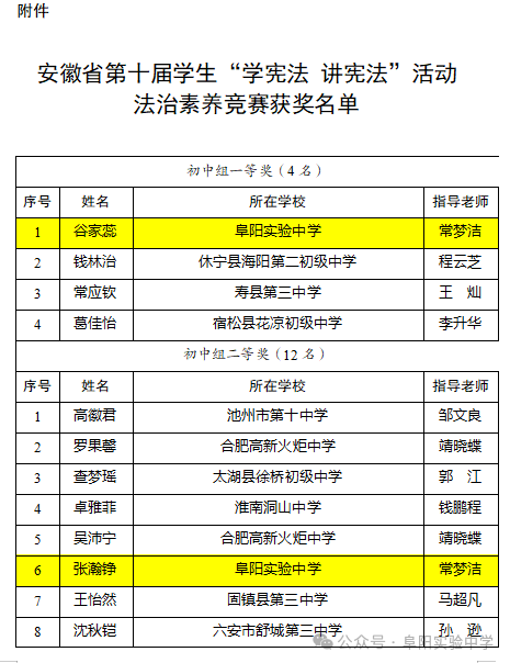 宪法之光闪耀校园——热烈祝贺阜阳实验中学学子在省级“学宪法·讲宪法”大赛中斩获佳绩