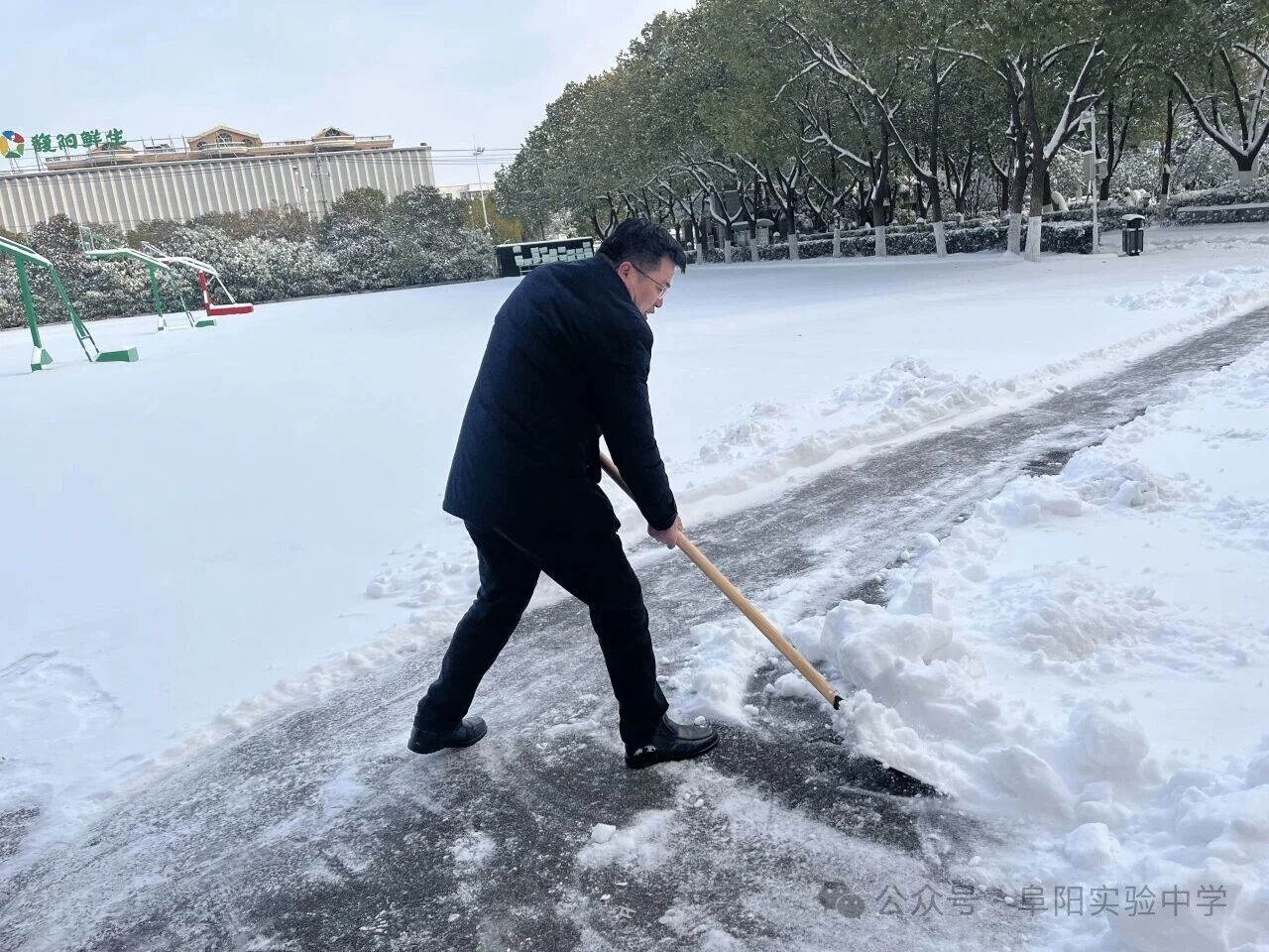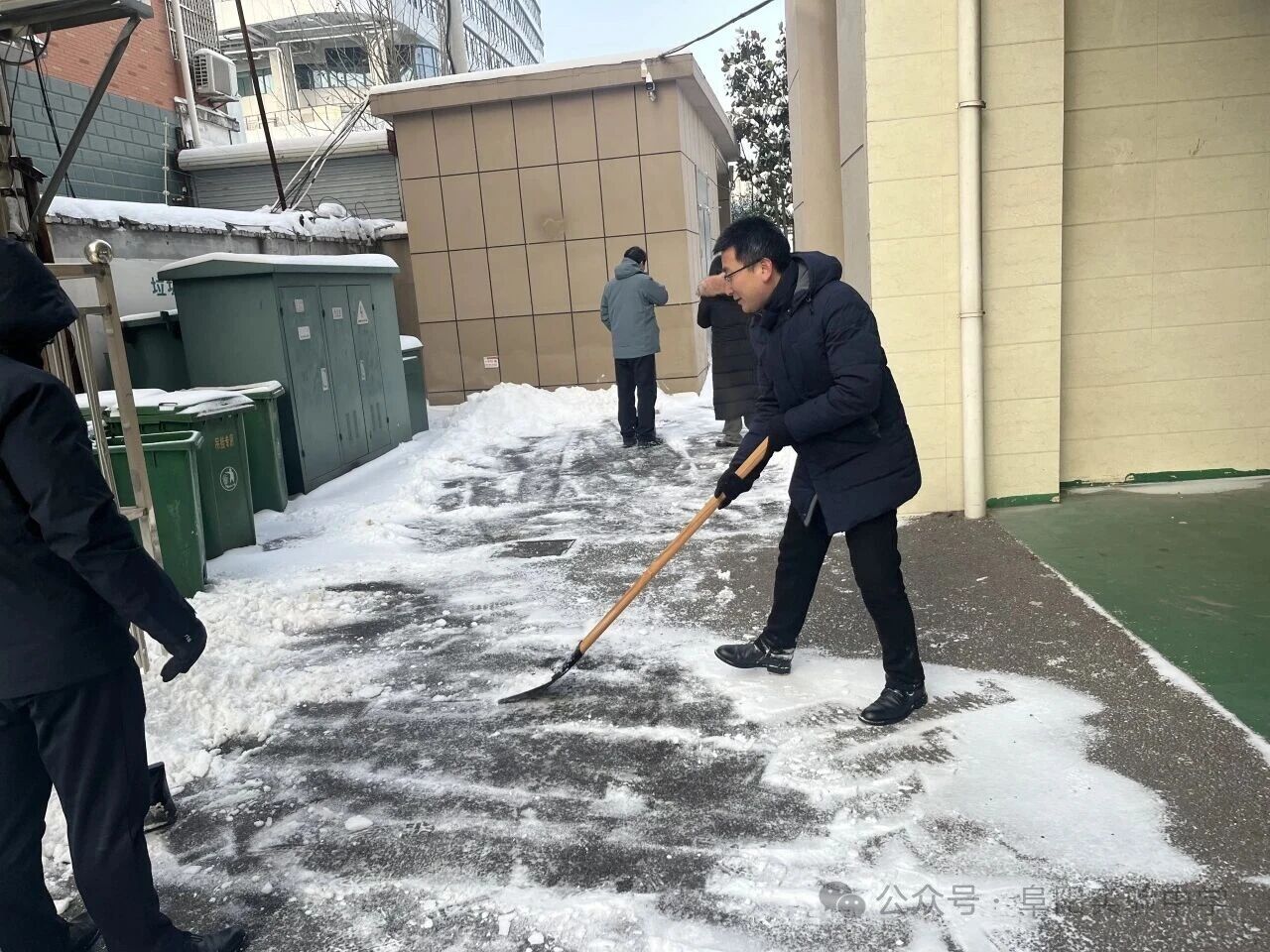 初雪添寒意,党员践初心——阜阳实验中学党员干部清雪在行动