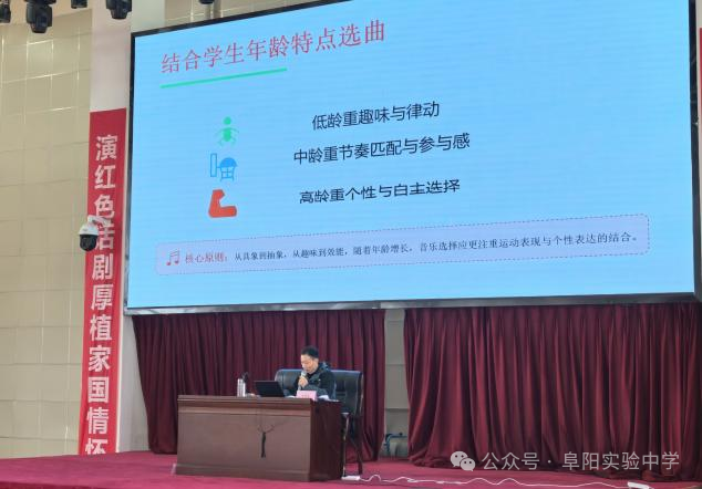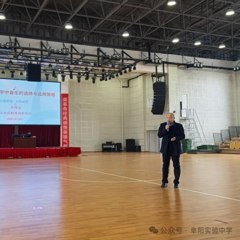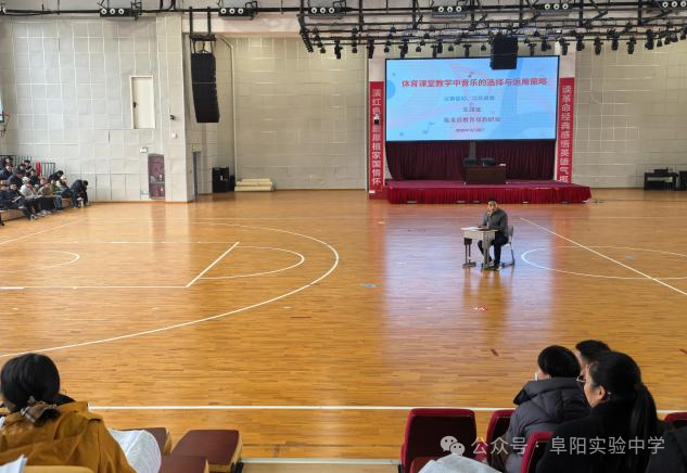 随后,临泉县教育局教研室朱国连老师带来《体育课堂教学中音乐的选择与运用策略》专题讲座,从音乐适配性、课堂场景应用等角度,为体育课堂提质增效提供了实用思路。