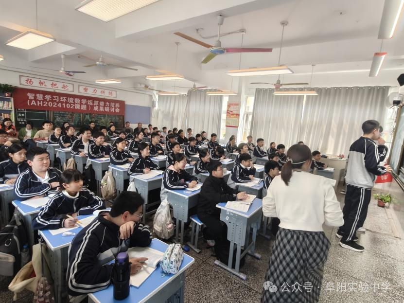 公开课结束后,课题研讨交流活动务实开展。颍州中学教导处主任许亚飞、数学教研组长和备课组长李俊、张坤等数学教师共同参与了研讨。谢灵老师结合课题研究实践,分享了自立项以来,课题组在智慧教学环境搭建、初中生数学运算能力培养策略、信息化教学资源开发以及 “双塔・五阶攀登” 课堂模式落地等方面的探索与阶段性成果。与会老师们立足课堂教学实际,围绕教学重难点突破、智慧教学工具实操、分层教学实施路径、学生运算能力提升等方面畅所欲言、坦诚交流,既对课堂教学给出了中肯细致的建议,也分享了各自的教学经验与思考。校际间的思想碰撞与经验互鉴,让研讨氛围务实而热烈活动。