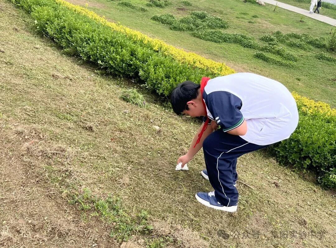 这次徒步最美的风景,不仅仅是明媚春光——一路行进,一路弯腰。同学们主动拿出随身携带的垃圾袋,沿途捡拾路边的纸屑、塑料瓶、包装袋等垃圾,用实际行动践行环保理念。这一弯腰,弯出的是素养;这一伸手,捡起的是责任。