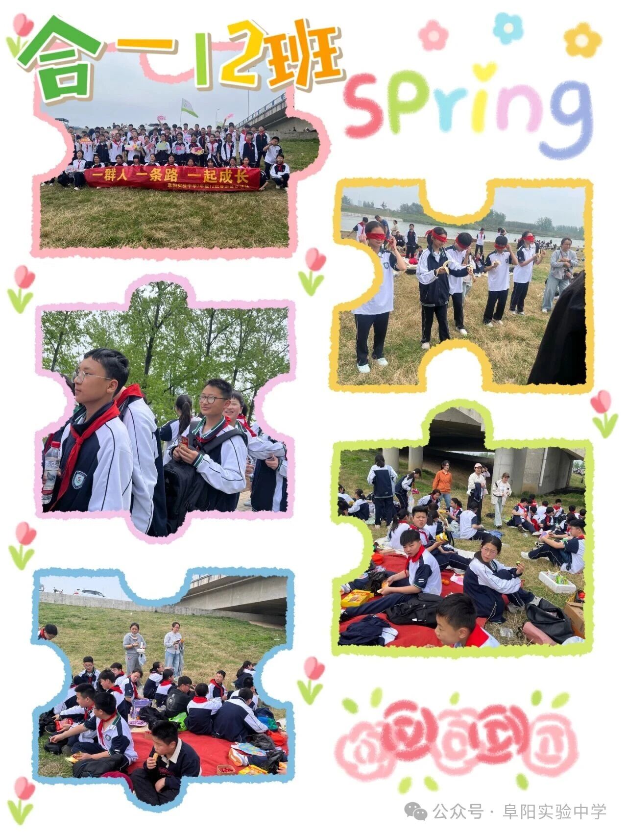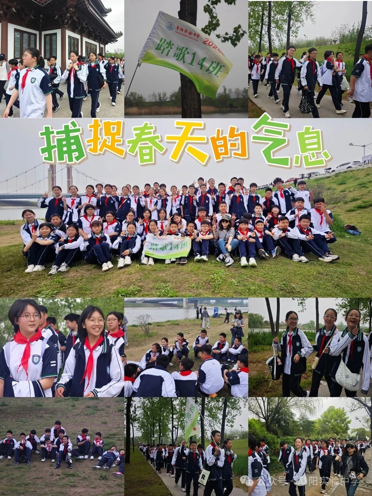 沿着河畔步道前行,水光潋滟,绿树成荫。一路上,校旗、班旗迎风飘扬,同学们精神抖擞,步伐整齐,欢声笑语回荡在春风中。在班主任的组织下,各班开展了丰富多彩的团队活动。