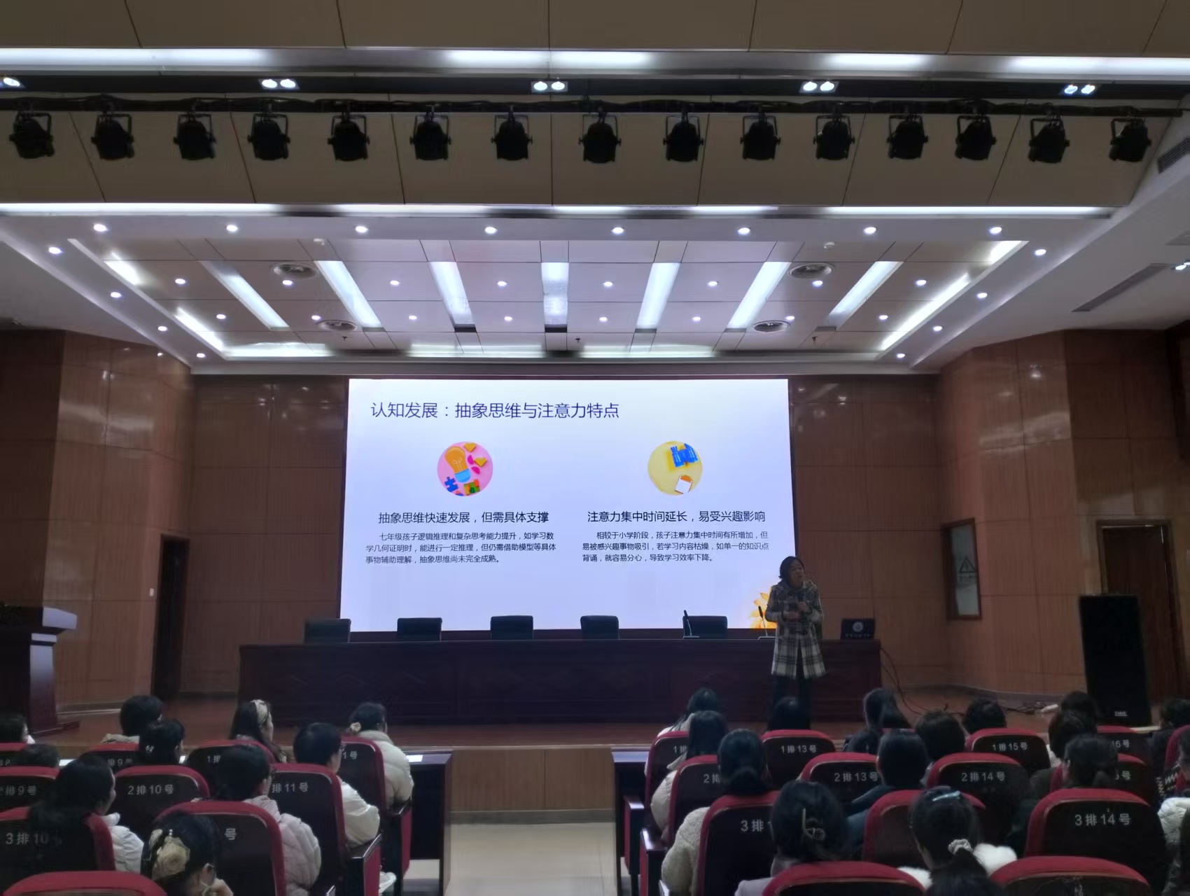 为帮助家长更好地应对孩子进入七年级后的成长转折,破解亲子沟通与孩子心理调适的难题,一场以 “守护成长,共筑阳光” 为主题的七年级孩子心理调适家长讲座12月2日在我校科技路十楼家长讲堂举办。讲座聚焦七年级孩子的身心发展特点,针对学业焦虑、包办代替、人际敏感等常见问题给出实用解决方案,为家长们搭建起科学育儿的沟通桥梁。